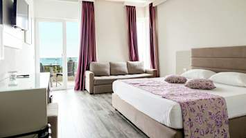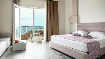 Lockar havets salta vågor har du som gäst dessutom tillgång till hotellets privata del av stranden, där solstolar och parasoller ingår. Här finns även en strandbar som serverar drycker och enklare medelhavsrätter under dagen.
