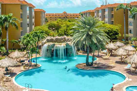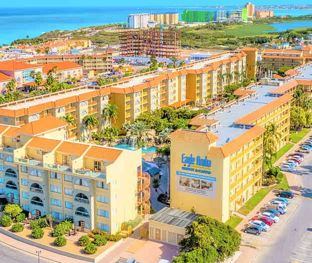 Eagle Aruba Resort är ett familjevänligt lägenhetshotell endast en kort promenad från den vita korallsandstranden, Eagle Beach, som är en av Arubas mest omtyckta stränder. På hotellet finns tre härliga poolområden av olika karaktär och här kan du ta avkopplande dopp i poolen med vattenfall eller svischa ner för vattenrutschbanan. För hotellets yngsta gäster finns en barnpool med solskydd. Vill du besöka fina Eagle Beach erbjuder hotellet även solstolar och parasoll på stranden för sina gäster. När du önskar ta en paus från solstolen under semestern anordnar hotellets egen personal roliga aktiviteter för vuxna och barn under dagen och trevlig underhållning kvällstid. Tycker du om att träna på egen hand har hotellet ett gym.