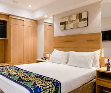 I rummens utrustning ingår centralt reglerad luftkonditionering, WiFi, TV, telefon, kassafack (mot avgift), minibar (mot avgift), skrivbord och stol, badrum och hårtork.