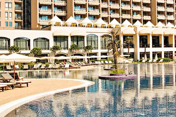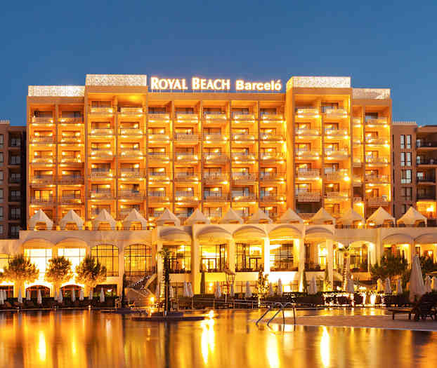 Barceló Royal Beach är ett stort och snyggt All Inclusive-hotell med bra läge i de centrala delarna av Sunny Beach. På hotellet finns två generösa poolområden och räcker inte de till ligger stranden en kort promenad bort. På hotellet finns flera restauranger och mellan måltiderna passar det utmärkt att få en behandling i hotellet spa eller varför inte prova på ett turkiskt bad? Med All Inclusive kan du dessutom äta och dricka hur mycket du vill.