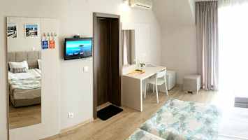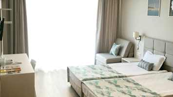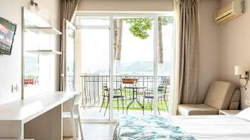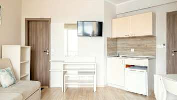 På Helios kan du välja om du vill bo i rum eller lägenhet med balkong eller terrass, och det finns stora lägenheter med plats för upp till sex personer. Från hotellets...