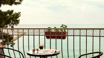 över havet och omgivningarna, och här kan du koppla av i en solstol under ett svalkande parasoll. På hotellet finns även ett litet spa där du kan unna dig massage och några skönhetsbehandlingar.