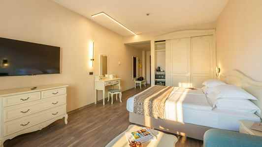 Hotellet består av tre byggnader och har ett fint poolområde med flera pooler, solstolar och en poolbar. Här finns dessutom ett vattenland med vattenrutschbanor för både små och stora som gillar roliga aktiviteter i vattnet. På Aqua Club GRIFID Bolero bor du nära stranden där hotellet har en privat del, och bara en kort promenad från hotellet ligger Golden Sands centrum med ett stort utbud av restauranger och butiker.
