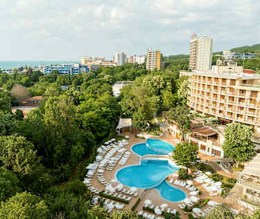 Stranden i Golden Sands är omkring fyra kilometer lång och har mjuk, gyllengul sand. Den är bred och har rader av solstolar, volleybollplaner och salustånd. I stånden kan du köpa både mat och dryck. Längs strandpromenaden finns också bra restauranger och mindre caféer. På stranden finns möjlighet att utöva vattensporter som paragliding, vattenskidor, vattencykel och omvänd bungyjump, där du skjuts upp i luften.