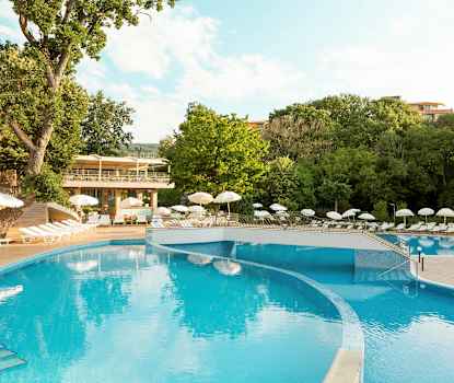 Hotellet har en stor pool som är uppdelad i tre mindre delar.