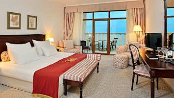 Här trivs hela familjen och för de yngre semesterfirarna finns barnpool, vattenrutschbanor, barnklubb och lekplats. Som vuxen kan du koppla av i det stora poolområdet, svettas på gymmet eller unna dig en härlig behandling i hotellets spa. Hotellet har flera restauranger och barer, och extra bekvämt blir det när mat och dryck ingår. Vill du lyxa till din semester lite extra kan du boka ett dubbelrum superior – då ingår extra faciliteter och förmåner.