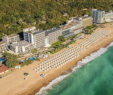 Stranden i Golden Sands är omkring fyra kilometer lång och har mjuk, gyllengul sand. Den är bred och har rader av solstolar, volleybollplaner och salustånd. I stånden kan du köpa både mat och dryck. Längs strandpromenaden finns också bra restauranger och mindre caféer. På stranden finns möjlighet att utöva vattensporter som paragliding, vattenskidor, vattencykel och omvänd bungyjump, där du skjuts upp i luften.