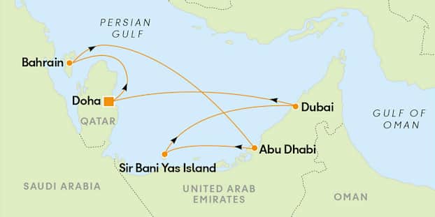 Bahrain, Abu Dhabi & Sir Bani Yas Island - hotellövernattning i Doha