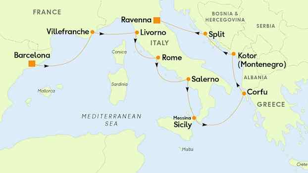 Den pittoreska lilla hamnstaden Villefranche är med sitt perfekta läge mellan Nice och Monaco en utmärkt utgångspunkt om du vill utforska Franska rivierans många små pärlor. Villefranche ligger vackert insprängd i bukten mellan St Jean Cap Ferrat och Mont Boron och med sina små gränder och färgstarka husfasader utgör staden ett tacksamt motiv för fotograferande besökare. Hamnpromenaden är stadens centrala mötesplats och längs kajkanten avlöser yachter, segelbåtar, restauranger, barer och små butiker varandra. Villefranche glamorösa granne i öst, Monaco, ligger enbart några mil bort och kan stoltsera med kasino, lyxbutiker och kändistäta uteserveringar. Vill du besöka de klassiska badorterna Nice och Cannes i väst är det bara att hoppa på tåget eller någon av de många bussar som går längs kusten. Fartyget lägger till strax utanför hamnen och passagerarna åker in till terminalen med mindre båtar.