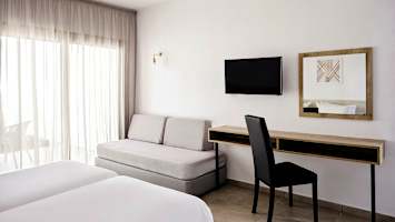 Atlantica Panthea Resort har rymliga och ljusa rum med balkong eller terrass som ligger i tvåvåningsbyggnader över hela hotellområdet.