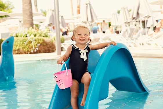 Det fina poolområdet har något för alla, här finns gott om pooler för både stora och små. Det finns också vattenrutschbanor, som garanterat blir alla barns favorittillhåll under semestern.