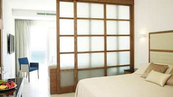 Långgrund fin sandstrand, vattnet är lugnt vilket gör att den är populär bland barnfamiljer och ett paradis för den som tycker om att snorkla. Här finns solstolar, parasoller och vattensporter mot avgift.Sirena Bay