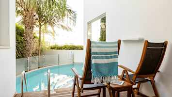 Föredrar du sand mellan tårna och havsbad ligger stranden precis nedanför poolområdet.