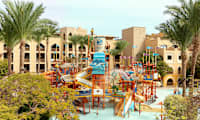 Hotellet har ett stort poolområde med vattenland. Tillsammans är poolerna över 5000 m² och här finns något för alla smaker. Du kan flyta med på en behaglig tur längs Lazy River eller bada i relaxpoolen, infintypoolen och Aqua Spray Pool. Känner du för något mer fartfyllt kan du prova vattenrutschbanorna och surfpoolen. De mindre barnen trivs säkert bäst i vattenleklandet.