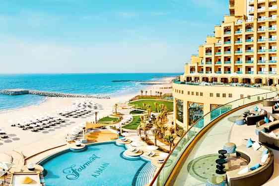 Fairmont Ajman är ett stort och inbjudande hotell med en känsla av elegans och lyx direkt på den fina stranden i emiratet Ajman. Ajman ligger strax norr om Dubai och är den minsta av de Förenade Arabemiraterna. Här ligger mycket av fokuset på den gyllengula sandstranden och dess strandpromenad som passar perfekt för en löprunda eller promenad. Från stora delar av hotellet kan du njuta av fantastisk havsutsikt och på Fairmont Ajman finns alla faciliteter du kan behöva för en skön och bekväm semester.