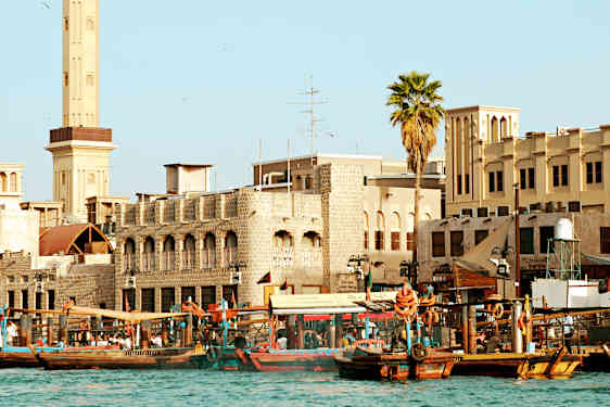 Dubais gamla centrum delas upp av floden, Dubai Creek i två delar, Deira norr om floden och Downtown Dubai på den södra sidan, och innanför dem; Bur Dubai. Längs floden trängs alla dhows, de traditionella träskutorna. Med vattentaxin, abran, kan du resa över floden på lokalt vis. Bur Dubai är ett ganska stort område. I den gamla delen vid sidan av floden finns Dubais kulturella centrum med Dubai Museum, och Al Bastakiya, en pittoresk och bohemisk stadsdel från 1800-talet.