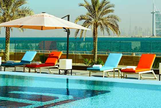 Aloft Palm Jumeirah är ett strandnära och trevligt inrett hotell med fina, färgrika detaljer. Hotellet ligger längst ut på Jumeirah Beach och här bor du på med härlig utsikt mot Burj Al Arab och staden.