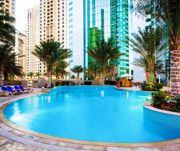 På populära Blue Beach Tower The Walk JBR finns det mesta du kan önska dig för en komfortabel semester. Runt det mysiga poolområdet kan du koppla av i en solstol och för extra avkoppling är ett besök i hotellets välordnade spa att rekommendera. Önskar du i stället röra på sig kan du besöka hotellets gym.