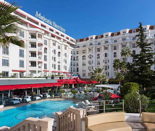 Barrière Le Majestic Cannes är ett glamouröst lyxhotell som ligger perfekt på Cannes exklusiva gågata La Croisette. Hotellet passar dig som vill unna dig något extra under semestern. Här kan du sola och bada vid poolen som är uppvärmd året runt. Vill du hellre bada i havet är du välkommen till hotellets privata strand. Skäm gärna bort dig själv i hotellets spa, en verklig oas av välbefinnande. Barrière Le Majestic Cannes har dessutom två barer och tre restauranger, den ena av dem på stranden.