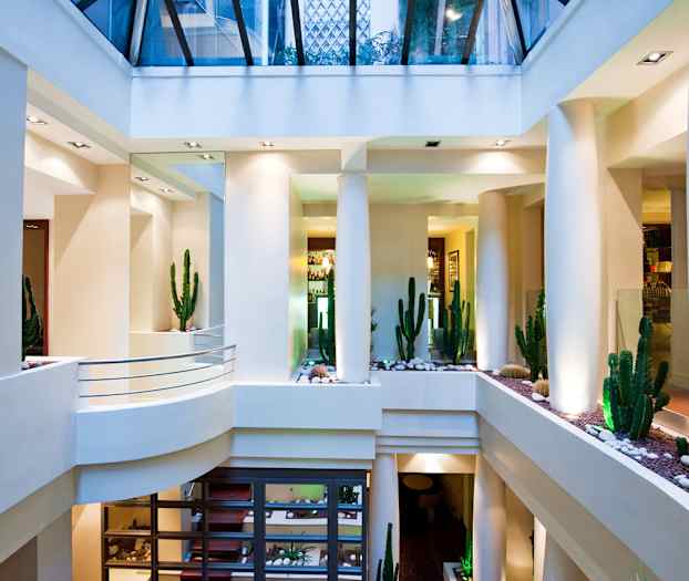 Här checkar du in på ett modernt hotell som ligger framför Sorbonne-universitetet vid Boulevard St. Michel. Hotellets inredning är stilren med genomtänkta detaljer som ger en varm atmosfär och glastaket över den vackra kaktusträdgården ger ett vackert ljus. I hotellets frukostrum som ligger i valv från 1700-talet kan du starta dagen med en mättande frukost.