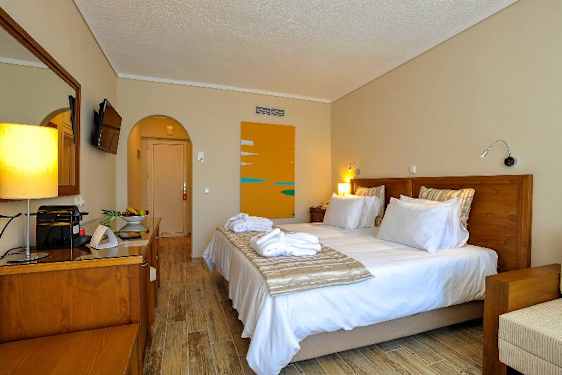 Detta hotell har ett lugnt läge, bara 2, 5 kilometer från det livliga Kallithea, en av de största kommunerna i Grekland. Den pittoreska byn Kryopigi, på Kassandra-halvön, ligger en kort bilresa bort, medan Thessalonikis flygplats ligger cirka 90 minuters bilresa bort. Gästerna hittar en lång sandstrand där det turkosa vattnet smälter perfekt samman med himlens blå färg. Hotellrummen är fint möblerade och smakfullt inredda i lugnande toner för att skapa en avkopplande atmosfär där resenärer kan känna sig som hemma. De som vill njuta av fullständig avskildhet kanske föredrar de bekväma bungalowerna som erbjuder samma tjänster som hotellrummen, men med en egen terrass. När det gäller matalternativ erbjuder den berömda kocken Tassos Ferekidis ett urval av läckra kulinariska kreationer inspirerade av medelhavsrecept. Frukost serveras i grekisk bufféstil och besökare kan köpa hemgjorda produkter som souvenirer i hotellets minimarket.