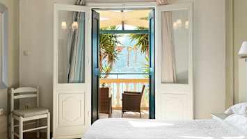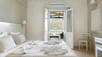 Hotellet har ett fint poolområde med utsikt över havet och grannön Telendos.