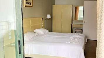 Många turister tar badbåten från Mirties till den lilla grannön Telendos. Korsar du ön kommer du till en liten och lugn stenstrand, som ligger i en bukt omgiven av klippor. Solstolar finns att hyra.Emborios