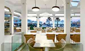 Här finns ett härligt poolområde omgivet av gräsmattor så det finns gott om plats för både lek och spring. Alldeles intill ligger även hotellets omtyckta restaurang med uteservering och utsikt mot havet. Här serveras frukostbuffén som ingår i priset, och vill du ha en extra bekväm semester kan du även boka till halvpension.