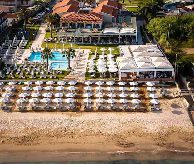 Acharavi Beach Hotel ligger perfekt precis vid den fina stranden i Acharavi, en liten by på Korfus norra kust. Hotellet ligger inbäddat i lummig grönska och består av flera låga byggnader utplacerade i ett parkliknande område, vilket gör hotellet mycket lugnt och stillsamt för både barnfamiljer och andra.