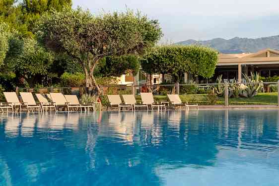 Mareblue Beach är ett stort och härligt All Inclusive-hotell som ligger i lugna omgivningar på en sluttning direkt vid havet, omgivet av olivlundar och pinjeskog. På hotellet finns gott om faciliteter för både stora och små gäster. Bland annat finns två inbjudande poolområden och flera restauranger och barer som håller öppet hela dagen, och eftersom All Inclusive ingår i priset kan du äta och dricka när du vill.