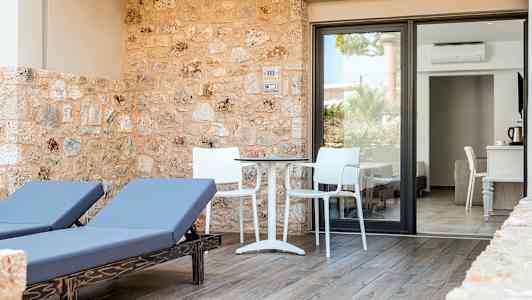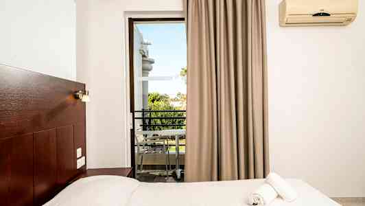 Apollon Hotel erbjuder ljusa och stilrena rum och sviter med balkong eller terrass.