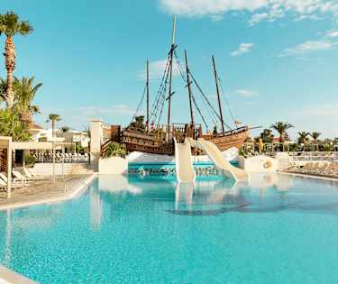 - Pool med piratskepp (130-150 cm djup) och två vattenrutschbanor