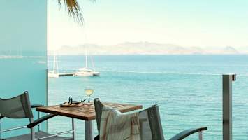 Hotellets trädäck med solstolar och parasoll är en favoritplats för många gäster. Här kan du koppla av i solen, och när du vill svalka dig leder en trappa direkt ner i havet. Vill du variera dig finns dessutom en liten strand med solstolar bredvid hotellet, och känner du för poolbad är du välkommen att använda poolen på systerhotellet.