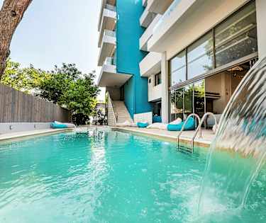 Triton har ett litet och gemytligt poolområde där du kan koppla av i mjuka sittsäckar och ta ett svalkande dopp i poolen. Föredrar du havsbad ligger en liten strand precis på andra sidan gatan. Som gäst på Triton är du även välkommen att använda poolen och poolbaren på systerhotellet Maritina, som ligger centralt med takterrass mitt i stan.