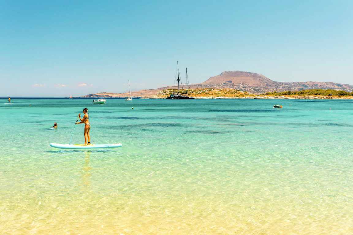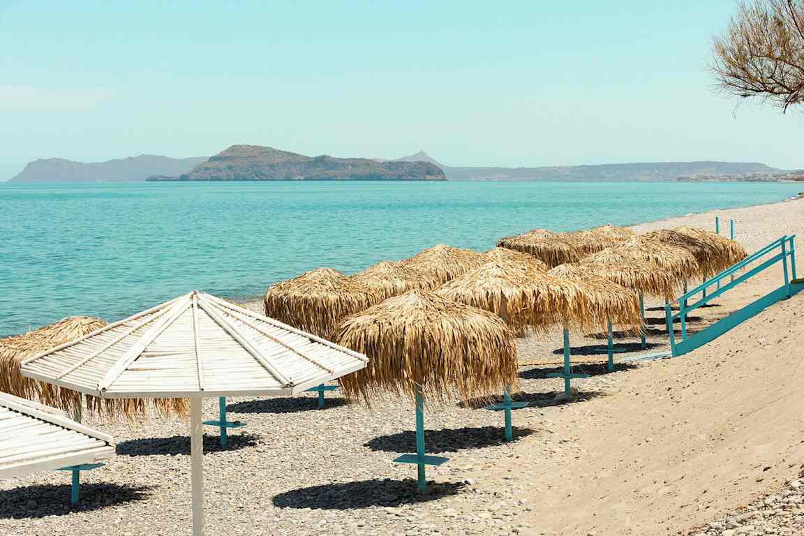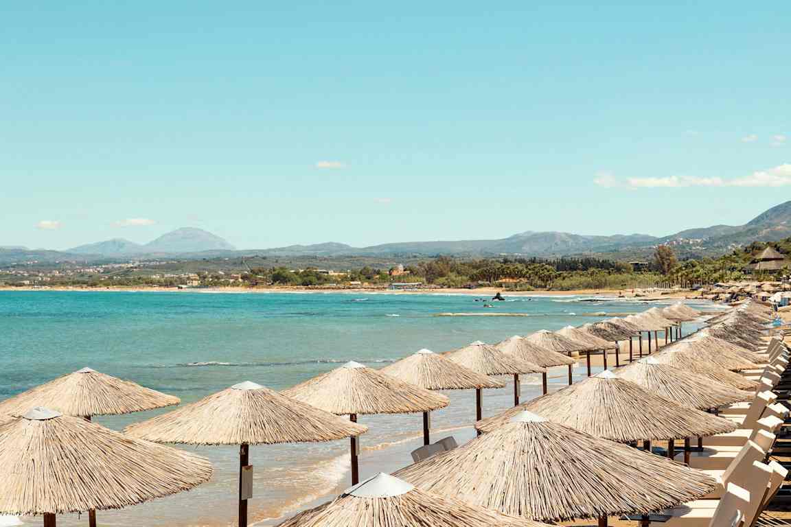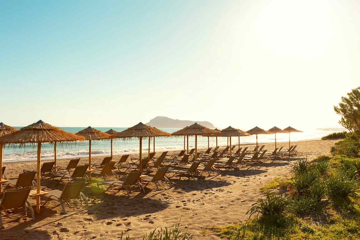 Stränder finns runt hela ön, av alla de slag. Längs med Chaniakusten ligger de som pärlor på en tråd, och de flesta är både långgrunda och barnvänliga. På Kreta finns också stränder som är värda en egen utflykt, som till exempel Elafonissi på Kretas sydvästra spets, eller Prevelistranden på sydkusten, med dess mytomspunna dadelpalmer. Åker du till Makrigialos kan du se fram mot det som kallats 'Kretas bästa strand', en kilometerlång strand som är barnvänligt långgrund.