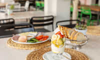 - Terrass i loftgång (varierande storlek och utformning) där andra gäster passerar. Trappa upp till terrassen