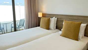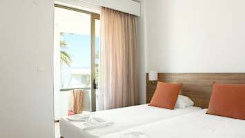 Tvårumslägenhet utan sovrumsdörr - mot poolområdet
