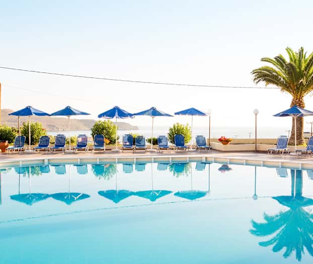 Eleftheria är ett enkelt och trevligt hotell som bjuder på lugna omgivningar och en härlig utsikt över det kretensiska landskapet. Här bor du på en höjd ovanför havet, omgiven av grönskande olivlundar, med avkoppling i fokus. Hotellets hjärta är det fina poolområdet, där du kan njuta av solen och den vackra utsikten medan du kopplar av i en solstol.
