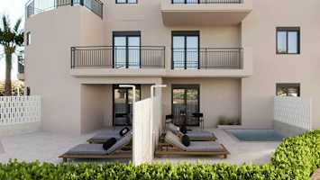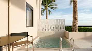 Dubblettrum med begränsad havsutsikt - mot poolområdet