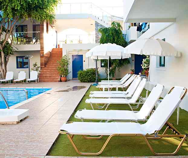 Minos Village är ett trevligt lägenhetshotell med lugnt läge i övre delen av Agia Marina. Här bor du i fräscha lägenheter och sviter med möjlighet att rå om dig själv och laga dina egna måltider. Vill du unna dig en middag ute någon kväll har hotellet en à la carte-restaurang och ännu fler restauranger finner du längs Agia Marinas huvudväg. Du kan även ta dig med lokalbussen till Platanias eller mysiga Chania stad för en god måltid i den gamla venetianska hamnen.