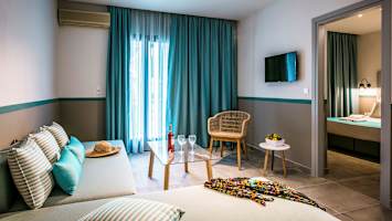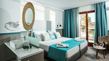 Solimar Turquoise erbjuder smakfullt inredda dubbelrum och juniorsviter för upp till fyra personer. Alla rum har balkong, vissa i markplan, och vetter mot omgivningarna.