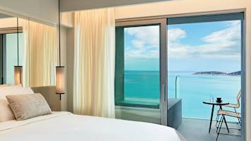 NIKO Seaside Resort MGallery erbjuder elegant inredda rum och juniorsviter, som alla ger dig en avkopplande vistelse. För extra guldkant på semestern rekommenderas ett rum med egen plunge pool på balkongen eller terrassen.