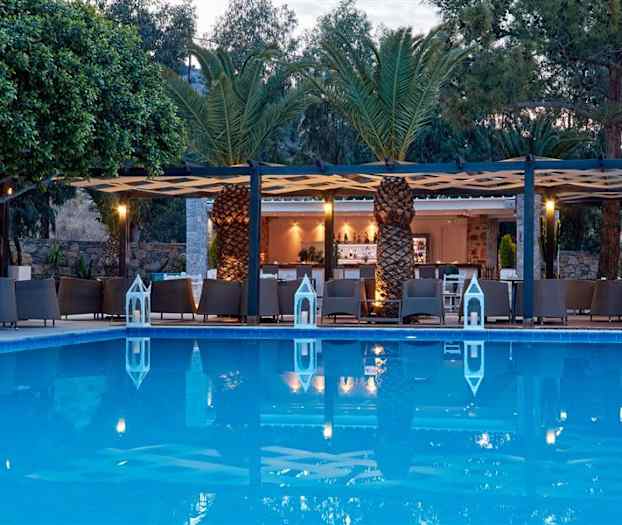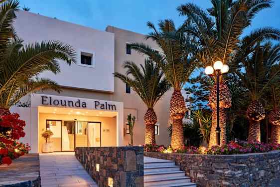 Elounda Palm är ett modernt boutique-hotell i naturlig miljö som utlovar fridfullhet och gemytlighet. Det ligger vid stranden till Mirabello-bukten i Elounda, en av Kretas bästa turistorter och passar bra för små familjer och par. Det är beläget 500 meter från stranden, 2 kilometer från centrum i Elounda liksom från en golfbana samt 8 kilometer från Agios Nikolaos.