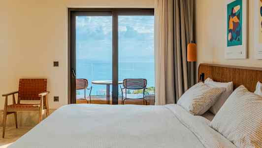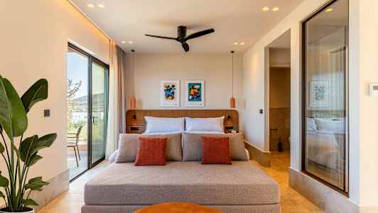 Rummen och juniorsviterna är modernt inredda med fokus på komfort och smarta detaljer. Här har du en skön plats att varva ner efter en dag fylld av poolhäng, träning och kvällsunderhållning. Bokar du en juniorsvit med plunge pool får du även en liten pool direkt på terrassen.