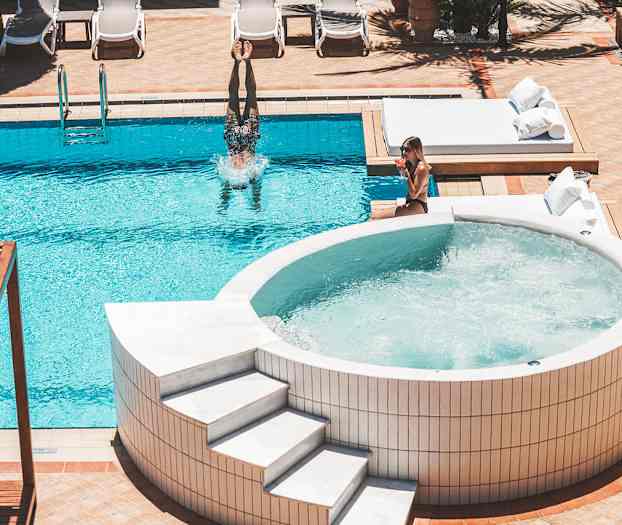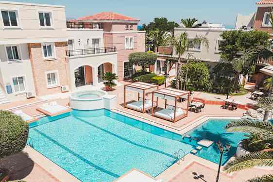 Zeus Village Resort - Adults Only erbjuder moderna och stilrena rum och juniorsviter mot trädgården och poolområdet. Vill du unna dig en stund för dig själv finns möjlighet att boka manikyr och pedikyr på hotellet, och för extra avkoppling rekommenderas en välgörande massage.