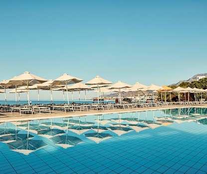 - Ligger i två- och trevåningslängor ovanför det stora poolområdet