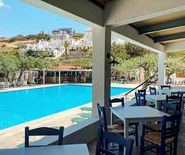 Villea Village har ett mysigt poolområde som är kantat av träd, som skänker behaglig skugga under semesterns varmaste dagar. Här kan du varva ner i en solstol och beställa något gott att dricka i hotellets kombinerade bar/restaurang.