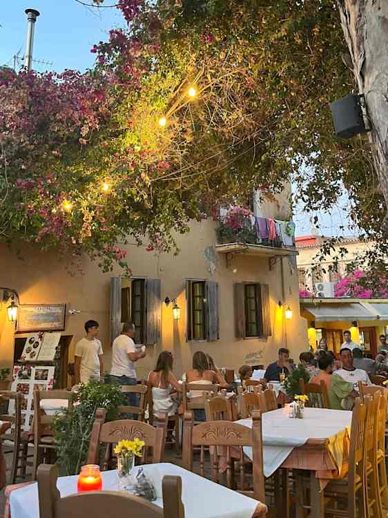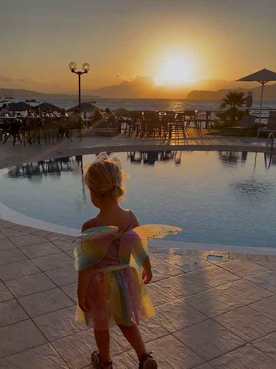 Nästa dag körde vi vidare västerut till Chania, Kretas kanske mest fotogeniska by – i alla fall gamla stan. Det var en kort och behaglig körsträcka, och väl framme åt vi souvlaki i en trång gränd under blommande bougainvillea. Vi insåg snabbt att det var omöjligt att hinna tillbaka till hotellet i tid för läggdags. Så vi lät bli, och jag fruktade det värsta – men resultatet blev en glad och nöjd treåring som hoppade och dansade längs hamnpromenaden i solnedgången.