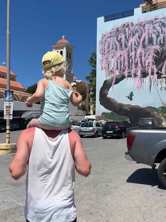 Vi hade en plan. Grovt skissad. Men den fick justeras redan första dagen, när vi insåg att ett lunchstopp innebar att köra rakt in i storstadsrusningen i Heraklion utan någon plan för exakt var vi skulle stanna. Det blev några omvägar, men vi hittade ett lunchcafé och, inte minst, ett jättestort stormarknad där vi köpte glass och några nya, spännande leksaker som gjorde bilresan mindre långtråkig för baksätesduon.