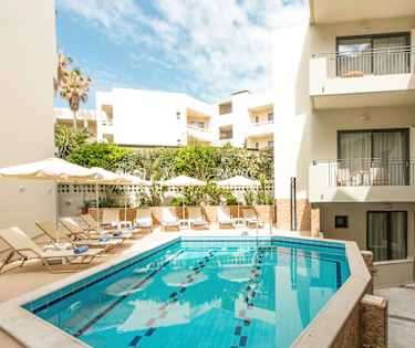 Stadens enda badanläggning. Ligger i direkt anslutning till den långa stranden, granne med hotellet Creta Palace. Barnpool, stora gräsmattor, lekplats, servering och bar. Rent och mycket fräscht. Relativt lugnt på förmiddagar, mer livligt på eftermiddagen. Baja Beach Club är ett utmärkt alternativ till stranden när röd flagg är hissad, eller om du har tröttnat på sanden.